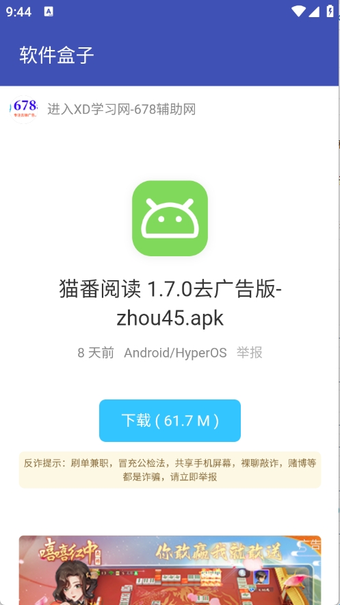 软件盒子是一款免费实用的手机软件库。软件资源丰富,小说、漫画、影视、工具等都涵盖其中,并且还会显示在软件库列表,用户可以直观的浏览,快速找到需要的软件。此外每种应用都有无广告版、免费版等多种版本,上架前经过严格测试,有兴趣的朋友们欢迎下载。