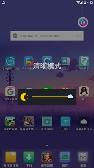 屏幕亮度调节器app能适配小米、魅族、OPPO、华为等手机品牌,与微信、淘宝、网易新闻、腾讯新闻、今日头条、UC浏览器、手机百度、QQ、爱奇艺、优酷、天猫、支付宝、百度地图、掌阅IReader、QQ阅读、京东、墨迹天气、高德地图、搜狗输入法等应用完美兼容。也可与天天酷跑、天天消消乐、斗地主、天天爱消除、保卫萝卜、部落冲突、奔跑吧兄弟、乱斗西游、捕鱼达人、海岛奇兵、植物大战僵尸等游戏兼容使用。
