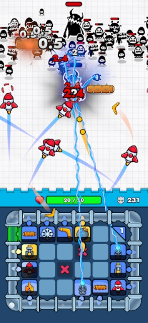 1、进入游戏后,放置的各种武器会自动的攻击出现的敌人。