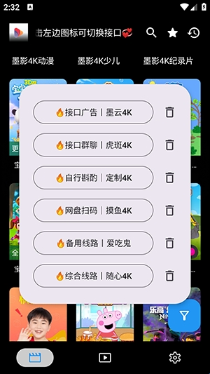 2、会显示影视接口配置,直接点击即可切换。