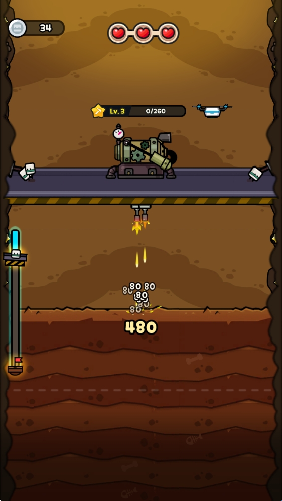 1、游戏中你的机器会自动的攻击底层,向下不断的挖掘。