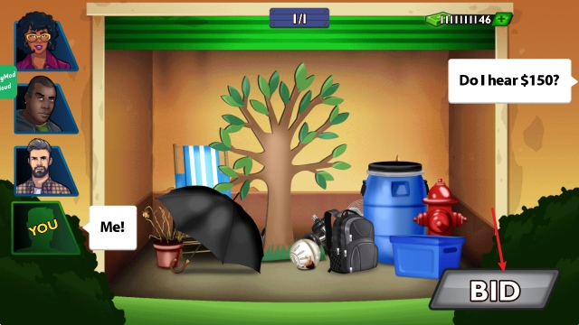 2、随后开始竞价,点击右下角的BID来出价,价高者得。