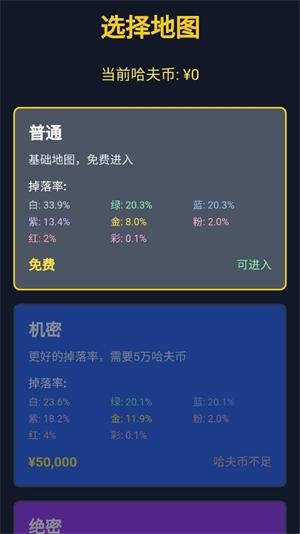 2、点击后你可以选择进入不同的地图,每个地图的入场费用是不一样的,费用越高的地图爆率越高。