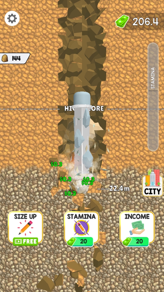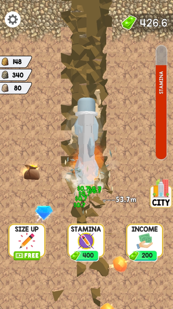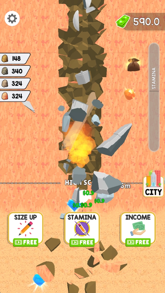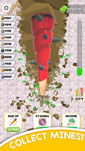 1、游戏中通过点击屏幕即可控制铅笔向下挖掘以收集矿石。