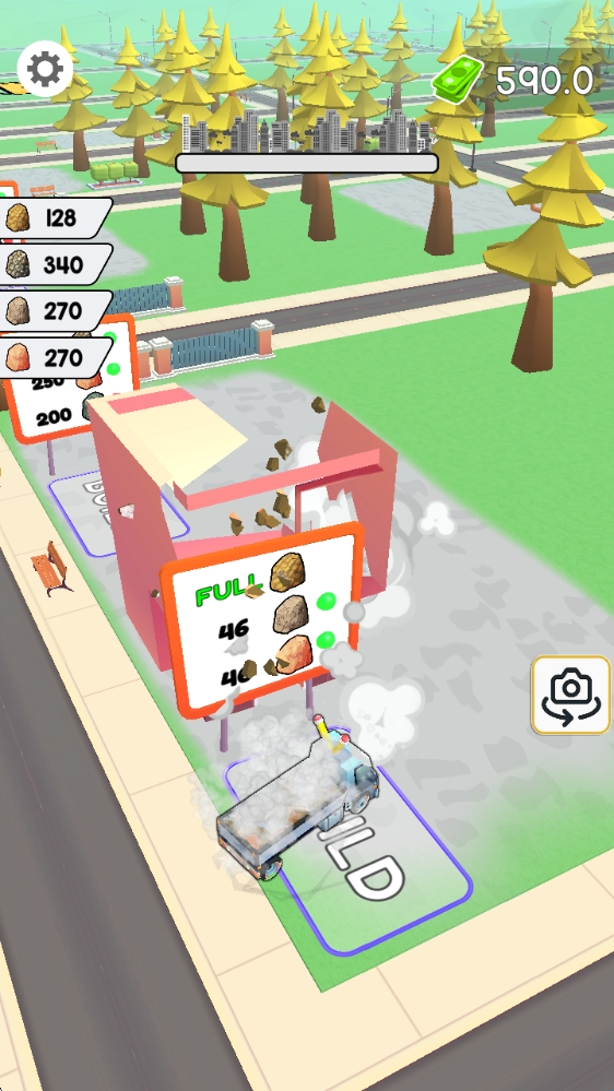 2、玩家可以驾驶载着石头的车辆在城市中穿行,在建造整个城市的同时建造建筑物并开辟新的区域。