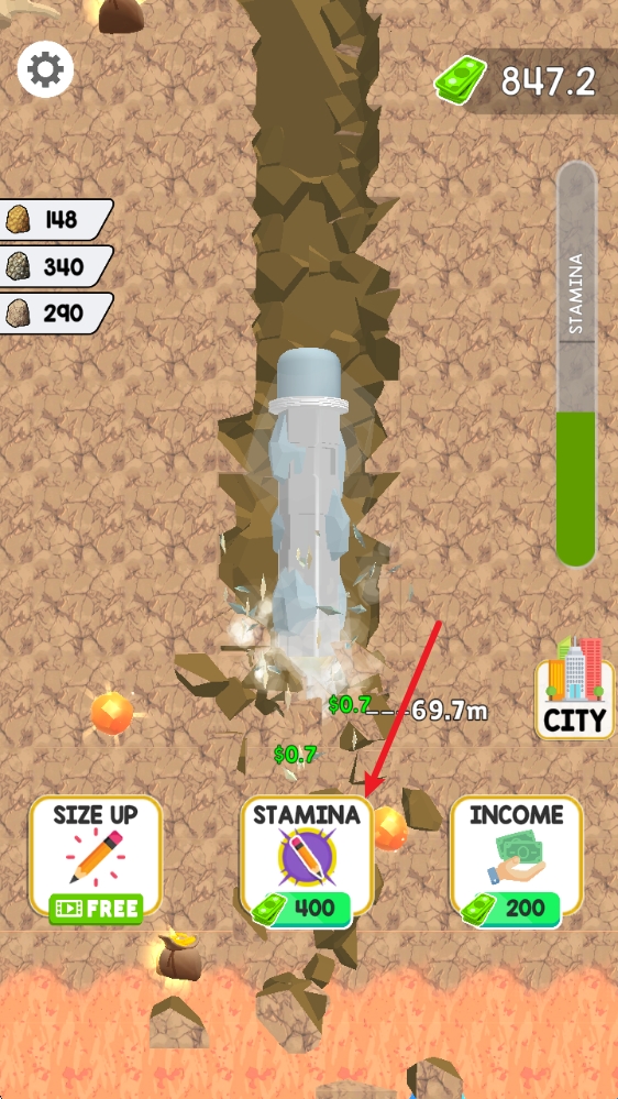 1、合理分配自己的资金,升级笔的各种属性,提升挖掘的效率同时,还能够挖掘更坚固的岩层。