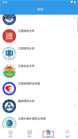 4、点击院校,用户可以选择自己感兴趣的院校;