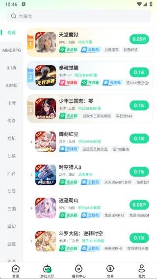 零壹游戏盒是一款专为游戏爱好者打造的游戏盒子平台。这里有卡牌、传奇、角色扮演等类型的游戏,并且每种游戏都有多个版本,像是0.1折的福利版本都涵盖其中,软件会持续举办优惠活动,平台币、代金券免费发送,超多热门游戏一键即可开启云玩,喜欢的朋友们赶紧下载吧。