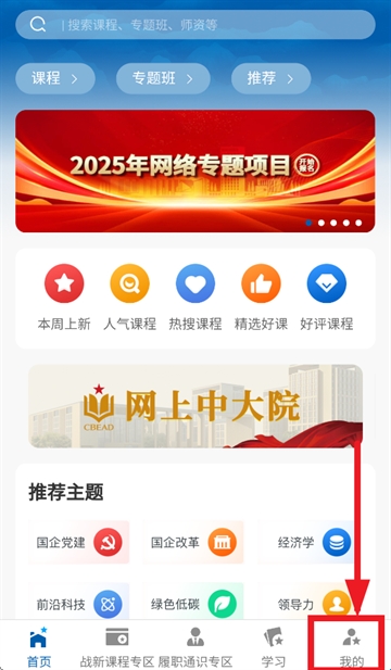 在本站下载安装并打开国企学习app,进入首页后点击我的