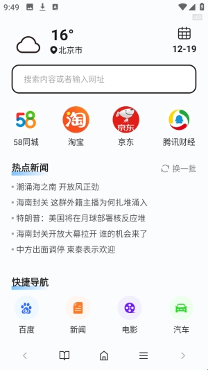 哈游浏览器是一款轻量极简的无痕浏览器。软件界面清新无广告,主页功能分布清晰明了,用户不仅能够观看热点新闻,还能使用快捷导航,软件会根据定位显示具体的温度、日期等信息,带来极其舒适的使用体验。软件所有基础功能都具备,有兴趣的朋友们快快下载吧。