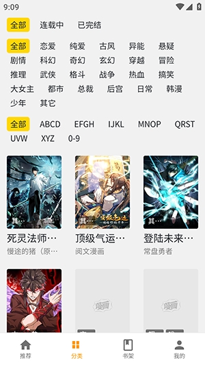 2、点击分类选项可以筛选感兴趣的漫画。