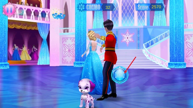 5、随后就会和王子加入舞会,操作十分简单,像这样蓝色的按钮待光圈到了点击即可,红色的则是需要同时点击。