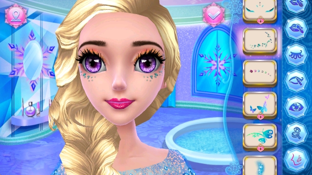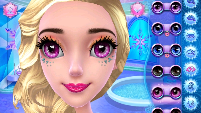 3、换好衣服,就让我们到化妆间里为可可化上一个惊艳的妆容吧,有趣的是这些妆容都需要你亲手为她涂抹;