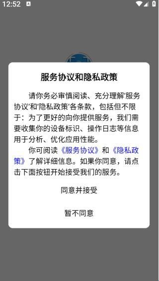 1.下载完成以后,需要阅读服务协议和隐私政策,点击同意进行下一步。