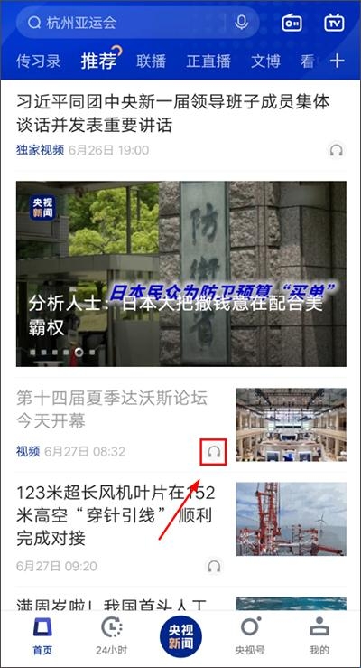 1、下载打开新闻联播App,在首页内点击自己需要听新闻的标题旁的耳机图标即可
