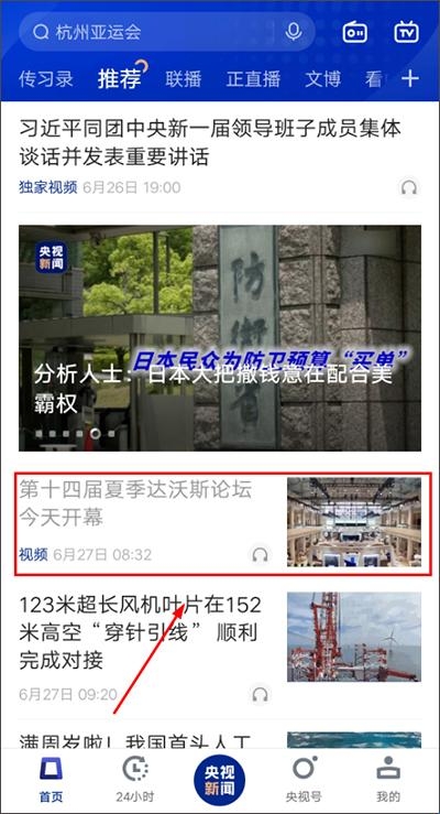 1、打开新闻联播来到首页中,这里推荐展示了很多国内外的热点新闻,点击一下即可开始阅读。