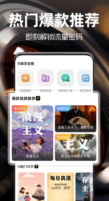 3、摆脱了传统剪辑的繁琐步骤,不用在多个工具之间来回切换调试,一个应用就能搞定所有视频相关操作。