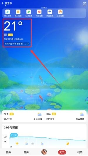 3、选择天气功能后,即可查看当前及未来数日的天气情况。