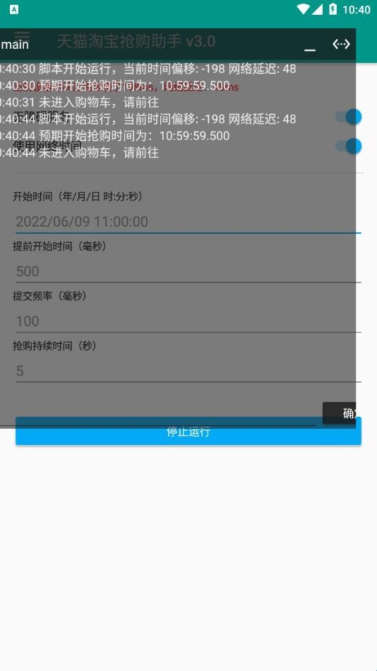 1、它用起来十分简单,只需提前设置开始时间、提前开始的时间、提交频率以及持续抢购时间就可以了,到时间后自动为你抢购,成功率还挺高的
