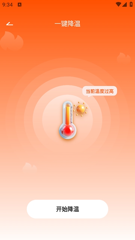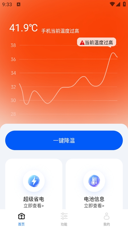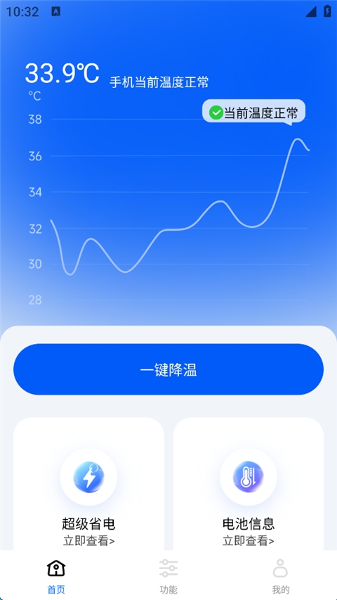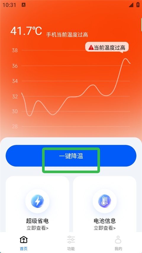 1、打开手机降温散热器app,可以看到手机当前温度情况,点击一键降温。
