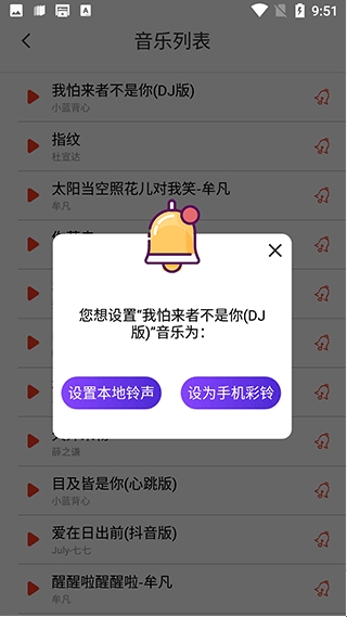 3、点击右方的小铃铛设置为本地铃声或者手机彩铃。