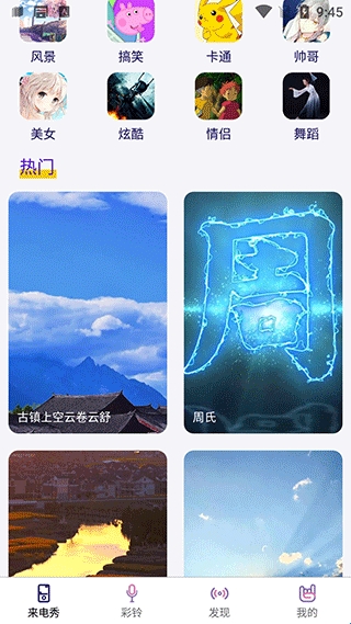 3、【海量主题 】全网热门短视频,明星、美女、网红、搞笑、动漫、游戏、萌宠、、、海量酷来电视频任你挑选,总有一款适合你。
