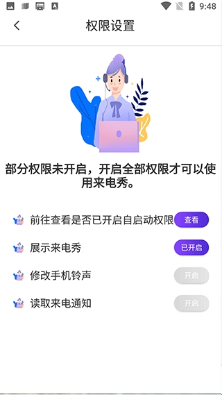 3、点击设置为来电秀,打开手机的自启动权限即可设置成功。