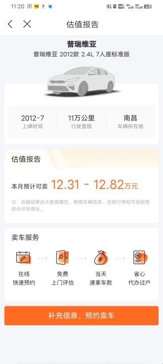 2、输入自己爱车的车型,上牌时间、行驶里程等等信息,点击免费估值;