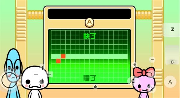 跟着前面的那两个饭团一起弹球,小球按A键弹大球按A+B弹,注意跟着前面两个饭团的节奏,这关没啥好说的,考你的节奏感和记忆力,球出现的间隔也不一,别看简单,很容易出错。