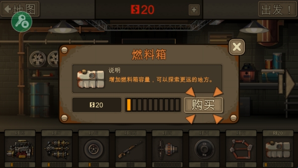 3.选好自己的战车,购买物资,比如购买燃料,但最初你的钱财有限,只能购买三格。