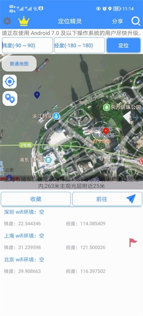 1、下载好app后,点击进入,首先默认是定位收藏界面,这里可以显示你所定位过的位置,也可在上方的地图手动设置。