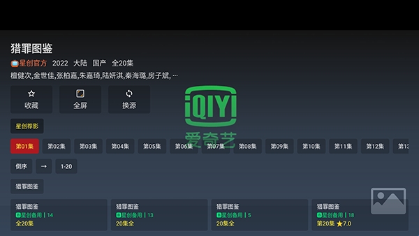 3、一键搜索快速匹配,可选集播放,还支持收藏、全屏、换源等操作。