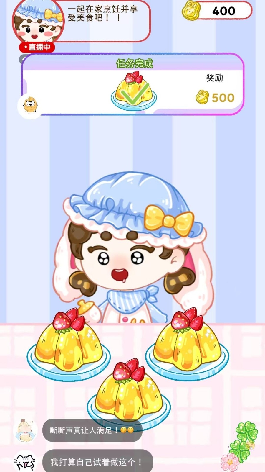 舌尖上的美食屋是一款非常好玩的休闲模拟类游戏,在这款游戏中,玩家需要扮演一位美食主播,通过制作美味的食物并进行吃播的方式吸引粉丝。游戏的画风简约清新,人物立体生动,场景真实自然,让玩家可以身临其境地感受美食吃播的乐趣,玩法简单,内容丰富,喜欢的小伙伴们快来下载吧。