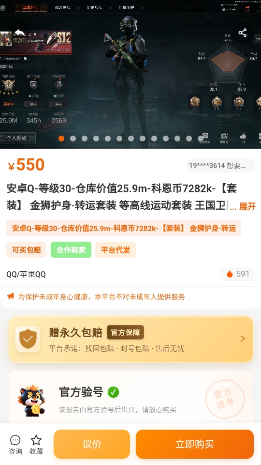 怪多代售app,一款专为想要交易游戏账号的用户打造的游戏代售平台。这里有着海量的覆盖各个领域的游戏账号,像王者荣耀、金铲铲之战、和平精英等热门游戏都应有尽有,同时软件主打安全防护,支持多重验号,并且永久包赔,欢迎有需要的朋友们在本站下载。