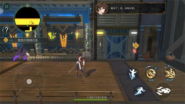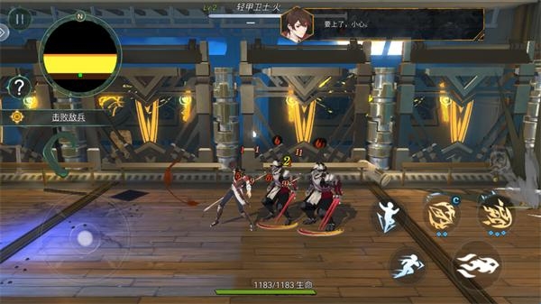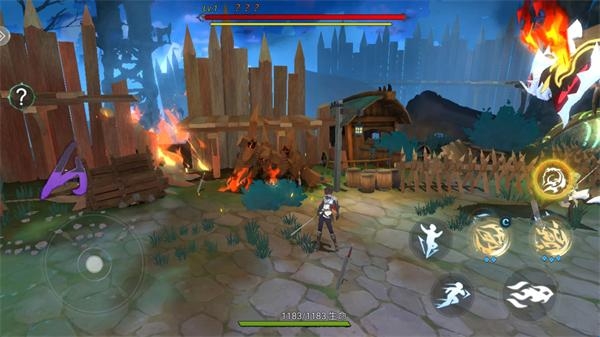 3、进入关卡后左边控制角色的移动,右边是角色的攻击、闪避、跳跃和各种技能按键。