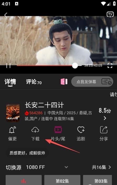4、进入播放页面,点击下方的下载按钮即可快速下载视频