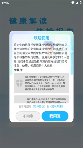 1、阅读并同意用户协议和隐私政策后,点击同意继续。