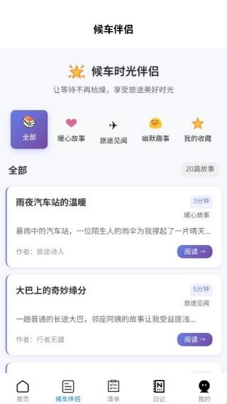 3、沉浸于候车时光的故事世界,精选旅行文学与本地传说,在等待中享受心灵的滋养。