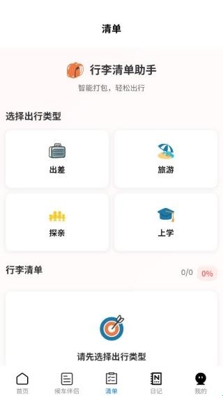 2、打开app,首页即提供定制化行李模板,根据您的目的地和行程自动生成携带建议。