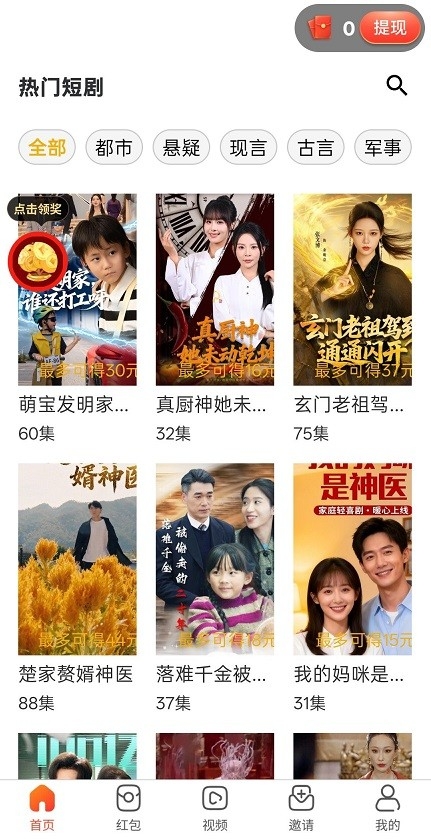 任务奖励系统:刷短剧、看广告即可获得积分或奖励。