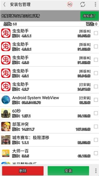 4、“删除重复包”功能,可一键扫描SD卡上所有的重复包,一键删除;