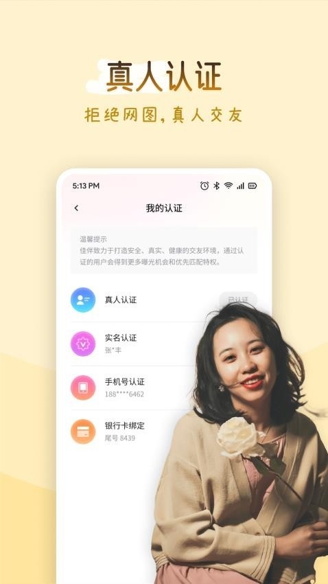 这款软件具有真人认证、实名认证、手机号认证等多重认证机制。