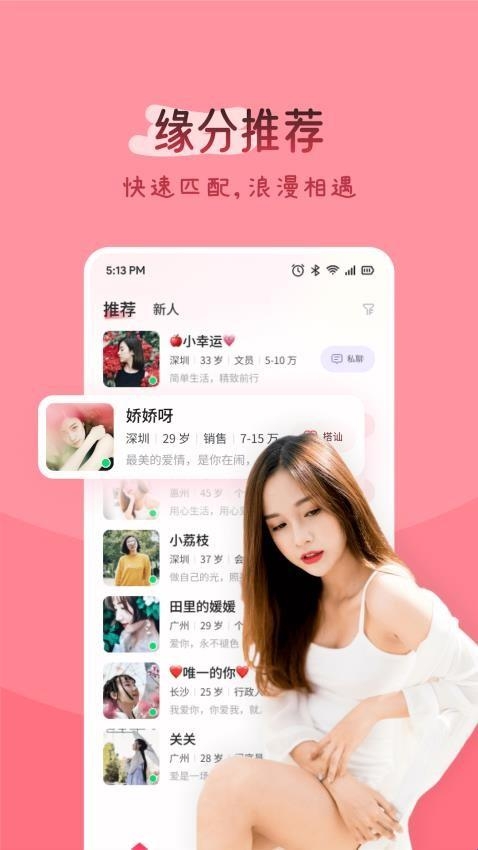 具有缘分推荐功能,为你推荐了许多优质单身异性,支持随时查看。