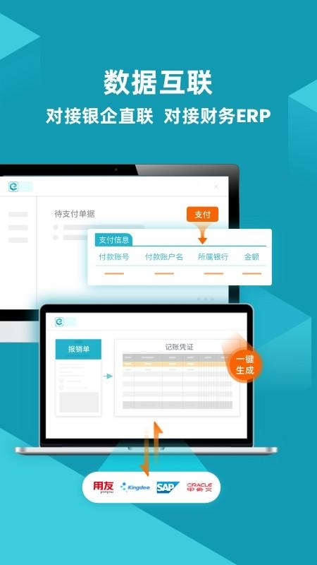 5、业财开放生态:对接支付宝/招行等银企产品,在线支付;直连用友/金蝶ERP,自动生成凭证。