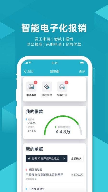 3、移动掌控:管理者可以随时进行费用审批,实施查看系统图表和财务数据,掌握企业现金流状况;