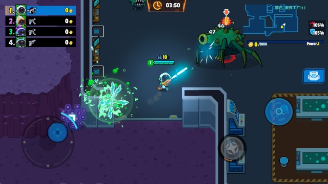 2、战斗中拖动左侧屏幕移动,靠近敌人后即可射击。