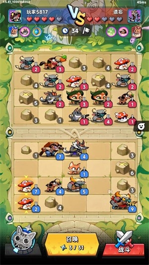 2、进入战斗后点击召唤按钮可以召唤英雄,相同等级的可以合并来提升等级。