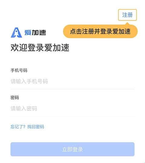 1、打开爱加速软件,使用手机注册并登录爱加速。