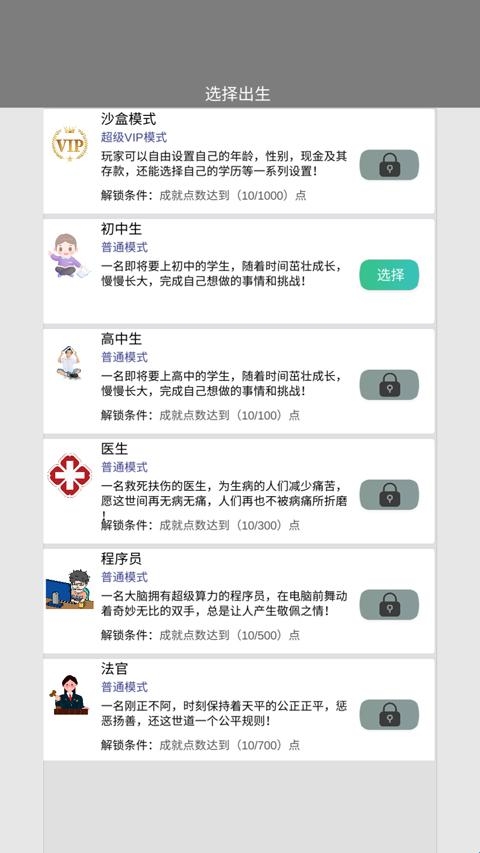 多样的结局与成就:每个玩家的人生轨迹都是独一无二的,游戏提供了多种结局和成就供玩家挑战,让你的每一次人生旅程都充满新鲜感和成就感。