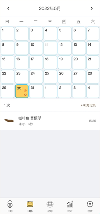 5、在日历这里可以清晰的查看到每日的便便情况,还可以手动补充记录;